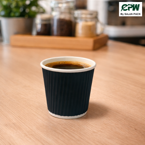 Ripple Wall คือแก้วกระดาษที่มีโครงสร้าง 2 ชั้น โดยชั้นนอกออกแบบเป็นลอนลูกฟูก (Ripple) ลอนเหล่านี้ไม่ได้มีไว้เพื่อความสวยงามเท่านั้น แต่ถูกออกแบบมาเพื่อช่วย ลดการถ่ายเทความร้อน และเพิ่มประสบการณ์ในการจับถือ แก้วประเภทนี้มักถูกใช้กับเครื่องดื่มร้อนที่ร้านต้องการ “ยกระดับภาพลักษณ์” มากกว่าแค่การใช้งานพื้นฐาน
