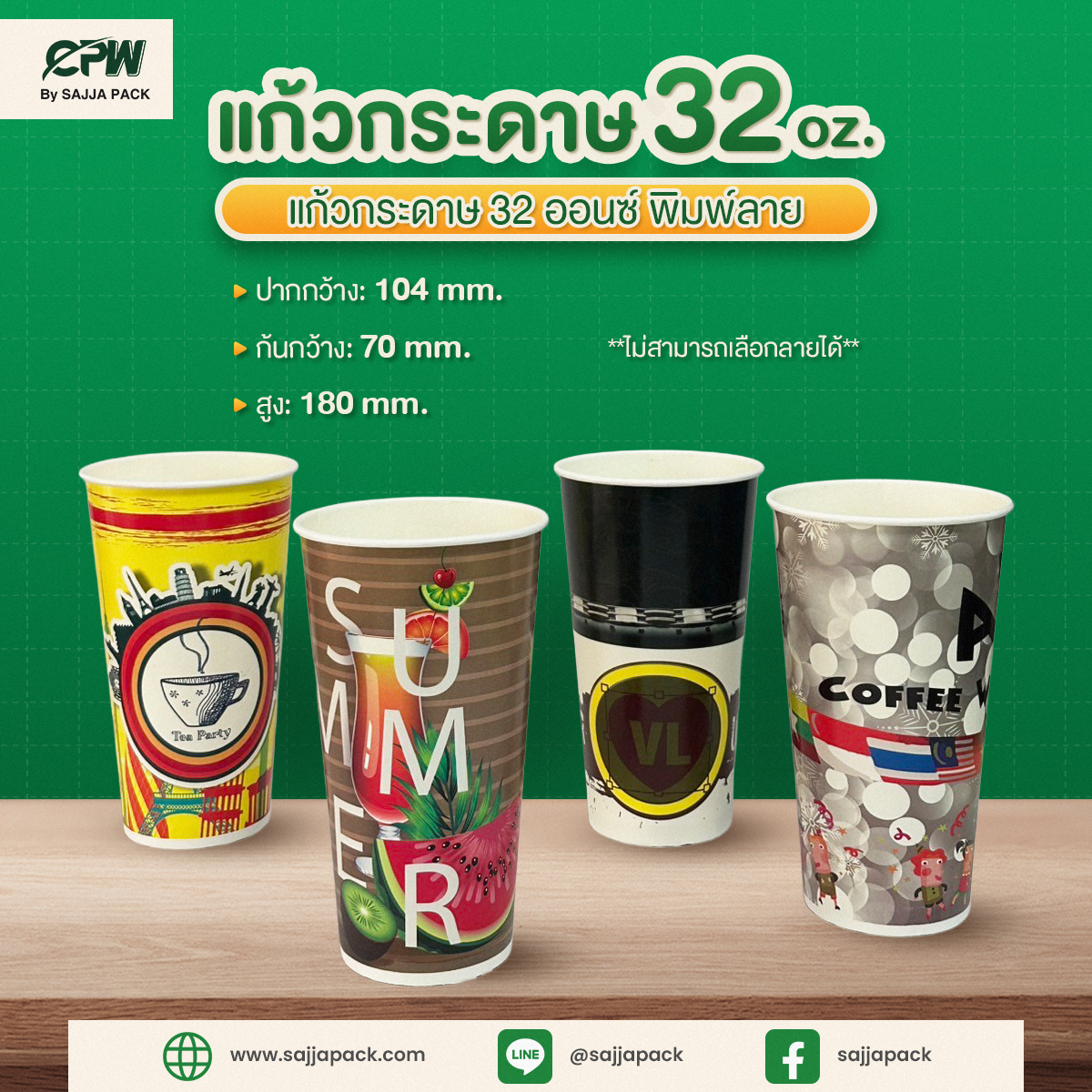 แก้วกระดาษ 32 oz พิมพ์ลาย (Paper Cup 32 oz)